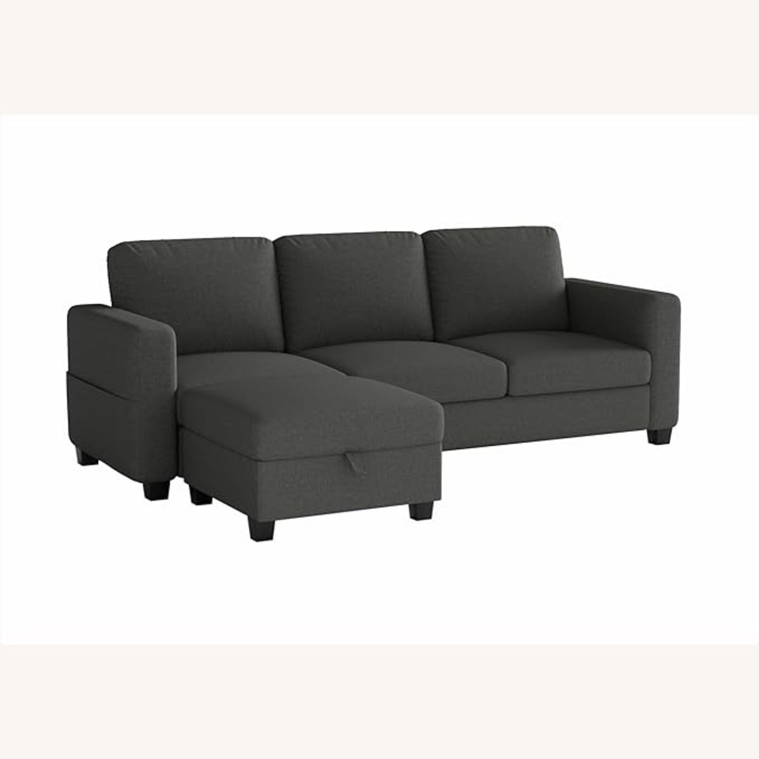 Sectional Couch with Storage: Enjoy ample storage with the ottoman’s large under-seat compartment and the sofa’s convenient armrest pocket, helping you organize essentials and keep your living room tidy. This smart design enhances your space efficiency, making it a practical couch for everyday use.