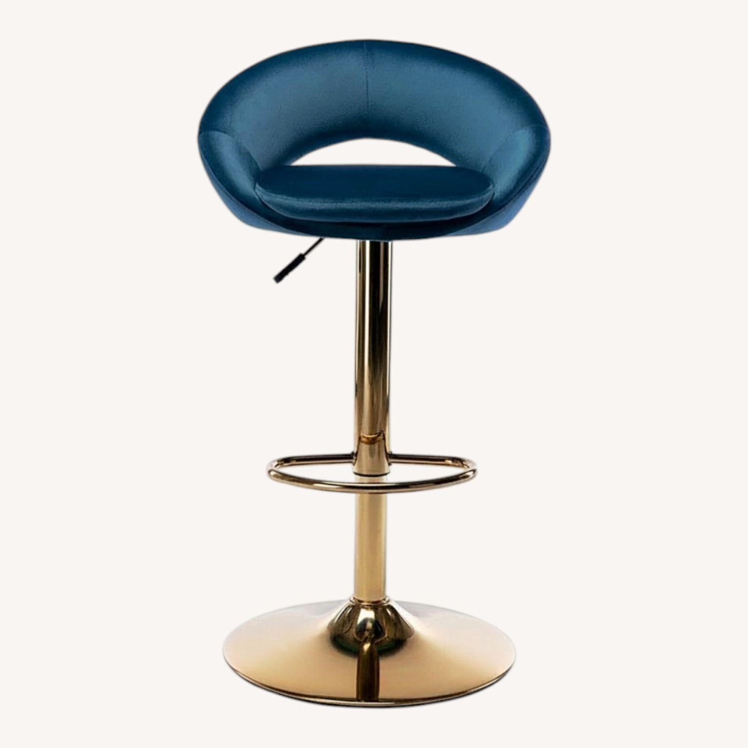 Seller's Notes:Set of 4 adjustable swivel bar stools. Teal velvet seat, polished gold pedestal base with footrest, 360° swivel, pneumatic height adjustment. Retails $195+ per pair. Great condition. Selling as a set only. Greenwich Village pickup.