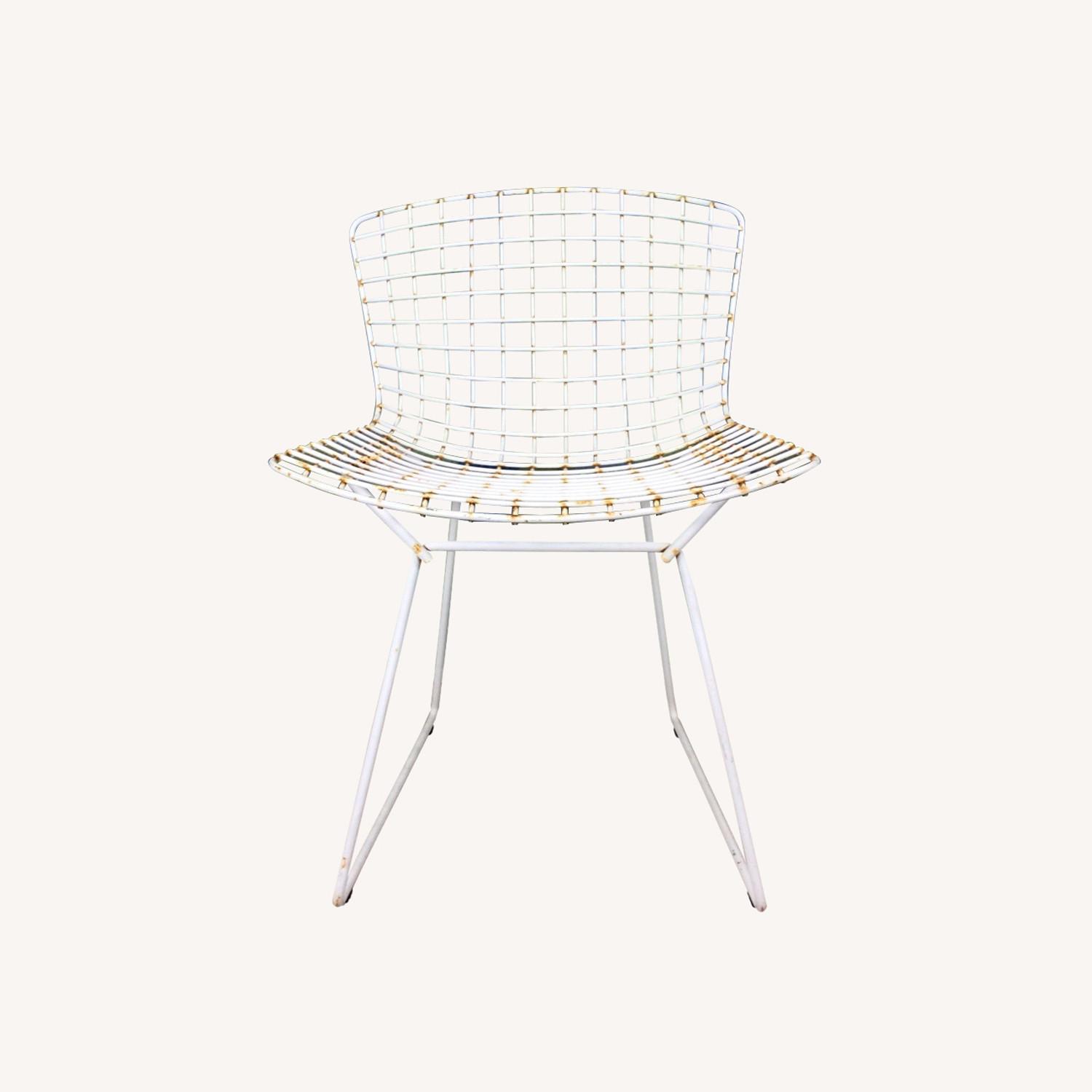 Seller's Notes:This mid century modern indoor / outdoor chair by Harry Bertoia for Knoll features white painted metal seats atop a pair of sled legs. Two sets of 6 chairs and two sets of 4 chairs *identical* available separately. Dimensions: 21w 25d 28.5h 19sh Condition notes: Original white paint is in fair condition. There is oxidation at the edges of the seat as well as along the welds and seams. This oxidation is purely cosmetic. The chair frame, seat, and back are all sturdy and solid with no deterioration of the metal. Please inspect photos carefully and contact with questions prior to purchase. 7.5/10 Shipping: Local pickup by appointment at our Red Bank NJ 07701 warehouse. Local curbside delivery within 75 miles starting at $250. Nationwide shipping available. Please contact with your zip code for a delivery quote PRIOR to initiating purchase. Delivery rates are calculated on a PER PIECE basis factoring in delivery logistics such as elevator building or 12 flight walk up, etc.