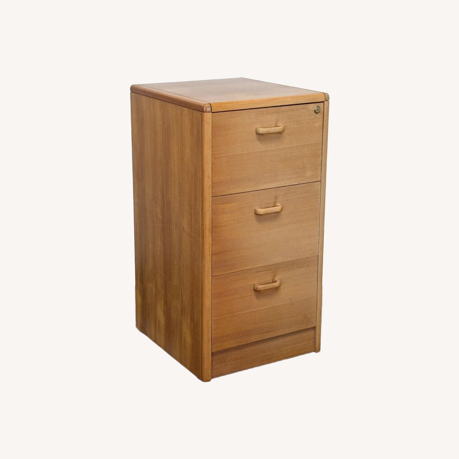 Seller's Notes:This sturdy filing cabinet features three spacious drawers for storing documents and office supplies. Made from solid wood with a light oak finish, it adds a classic touch to any office or home. The top drawer includes a built-in lock for added security. Easy-to-grip handles and smooth drawer slides make it convenient to use.
