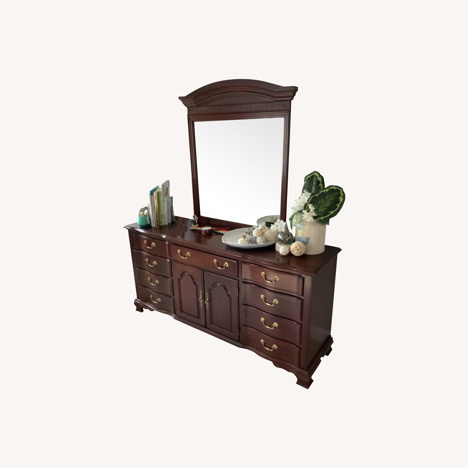 Seller's Notes:Pennsylvania House solid wood dresser with mirror. Part of a larger master bedroom set with king size poster bed frame and two night stands (sold separately).