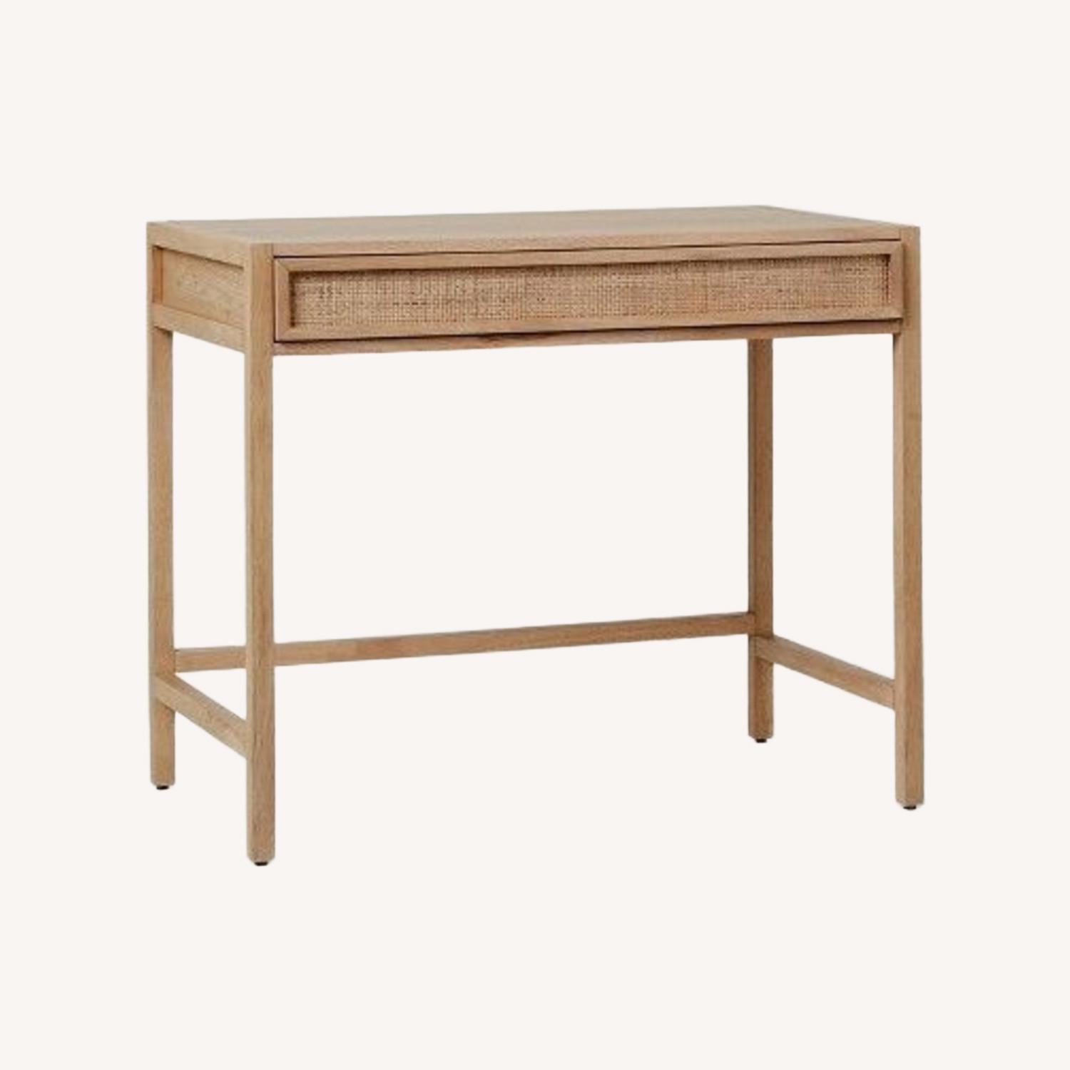 Refresh your reading nook or home office in sleek style with this Wood and Cane Transitional Writing Desk from Hearth & Hand™ with Magnolia. Crafted from wood, this rectangle writing desk has a natural finish to easily integrate into your existing decor style. Designed with a built-in drawer accented with decorative lattice, this writing desk offers ample space for your office supplies, lamp and more. Simply place this desk along the wall with a coordinating wooden chair to spruce up the look of your space. Celebrate the everyday with Hearth & Hand — created exclusively for Target in collaboration with Magnolia, a home and lifestyle brand by Chip & Joanna Gaines. Built upon our shared commitment to giving back to our communities, these pieces reveal the beauty of everyday moments shared with family and friends.