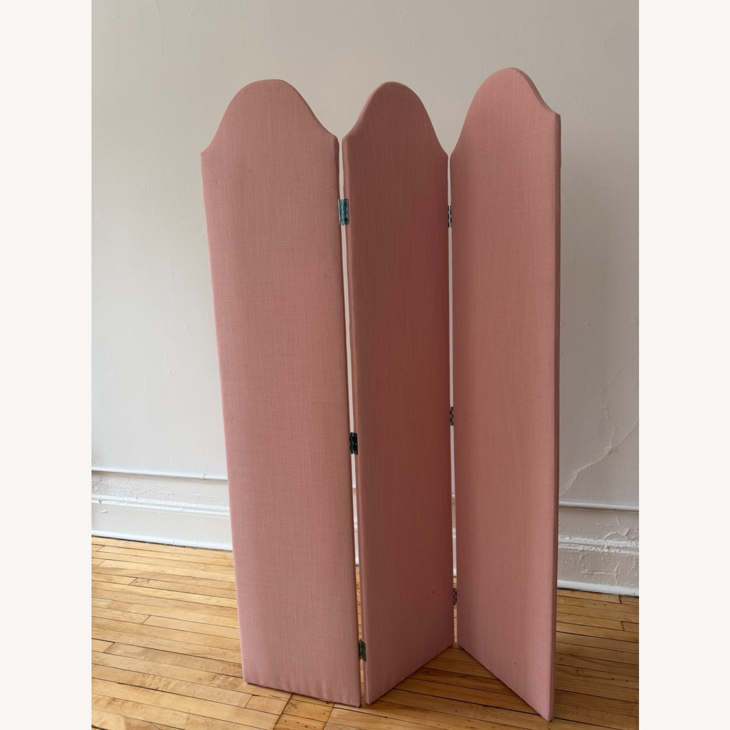 Seller's Notes:Beautiful upholstered three panel room divider screen (foldable) by The Inside in a pink linen-like material. Really pretty piece that helps define spaces; we’re only selling as we moved!
