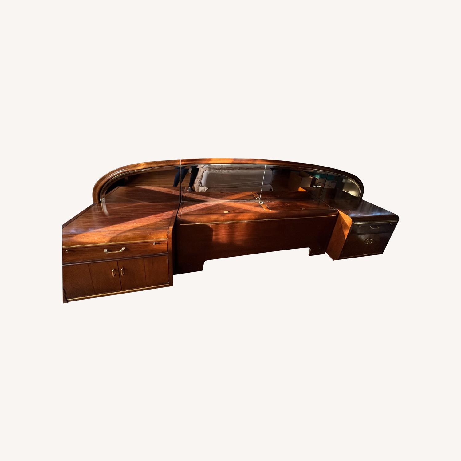 Seller's Notes:Beautiful headboard and nightstands. This piece still lots of life, minor stains to the wood on the right side. Quality wood, they don’t make it like this anymore