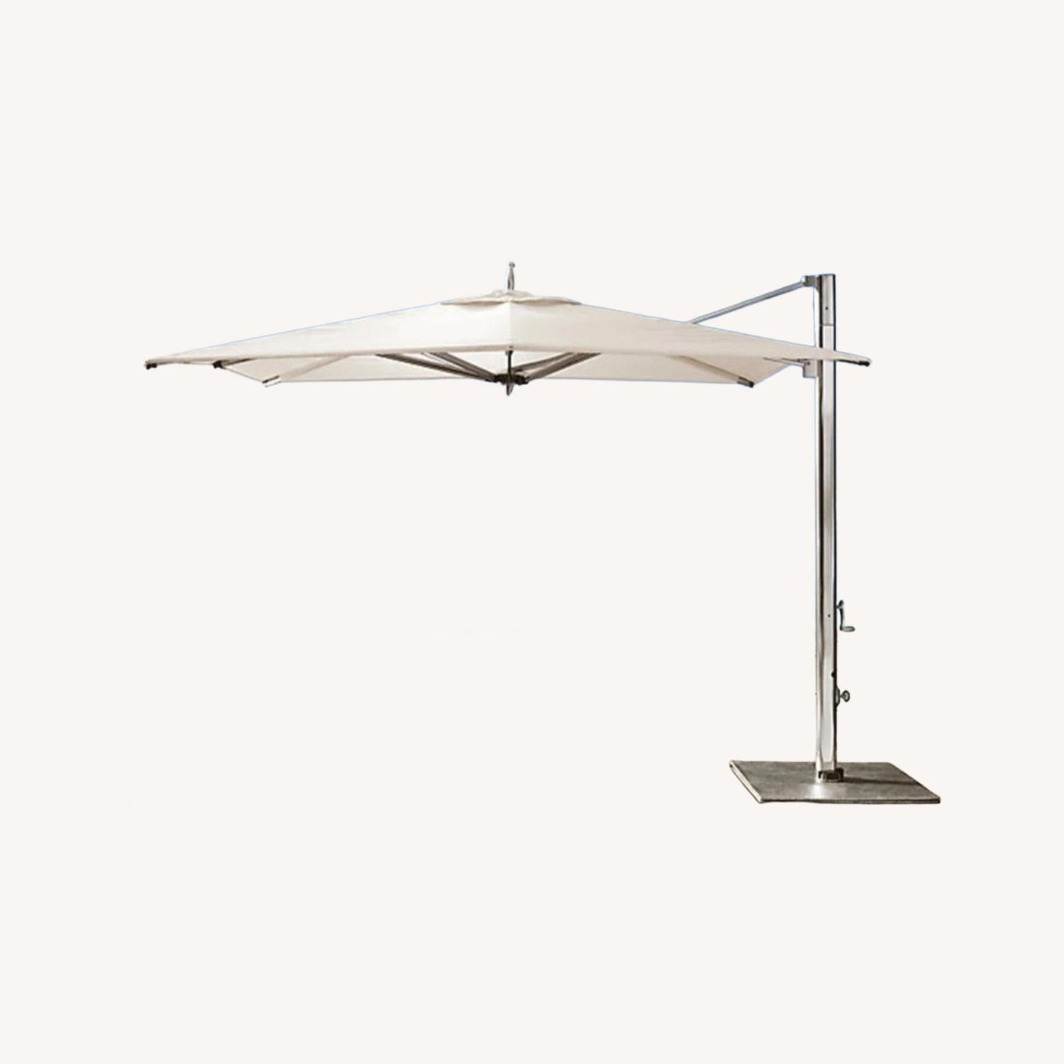 Inspired by the clean lines and soft curves of sailing yachts, the Tuuci Ocean Master Max Classic Square Cantilever Umbrella (2011) blends art and engineering in one elegant and highly functional shade solution. Constructed of marine-grade components, its generous canopy unfolds and extends out from a sturdy aluminum mast. The umbrella’s easy-to-operate crank system features self-lubricating stainless steel internal parts, which ensure a seamlessly smooth lift every time. The shade rises before opening, so it won’t knock things over, and the cantilevered canopy extends out to the side of the mast, meaning you can shade a large area more effectively. As with other shades, keep the umbrella in a closed position during storms and when not in use. DWR is not responsible for accidents or damage caused by misuse or weather. This shade must be used with an appropriate weighted base like the Tuuci Cantilever Umbrella Cube Base (sold separately). Made in U.S.A.