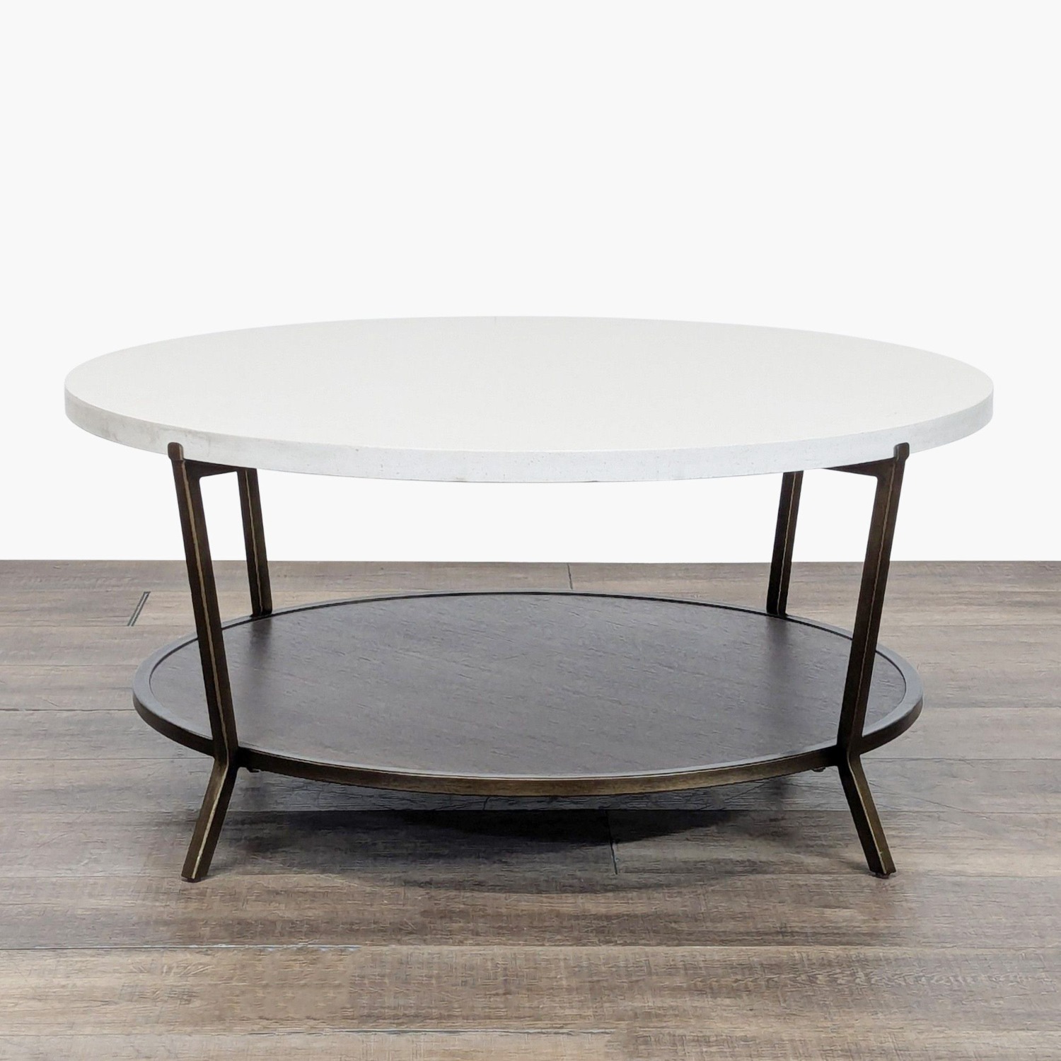 Used Epicenters Round Glass & Metal Coffee Table for sale on AptDeco