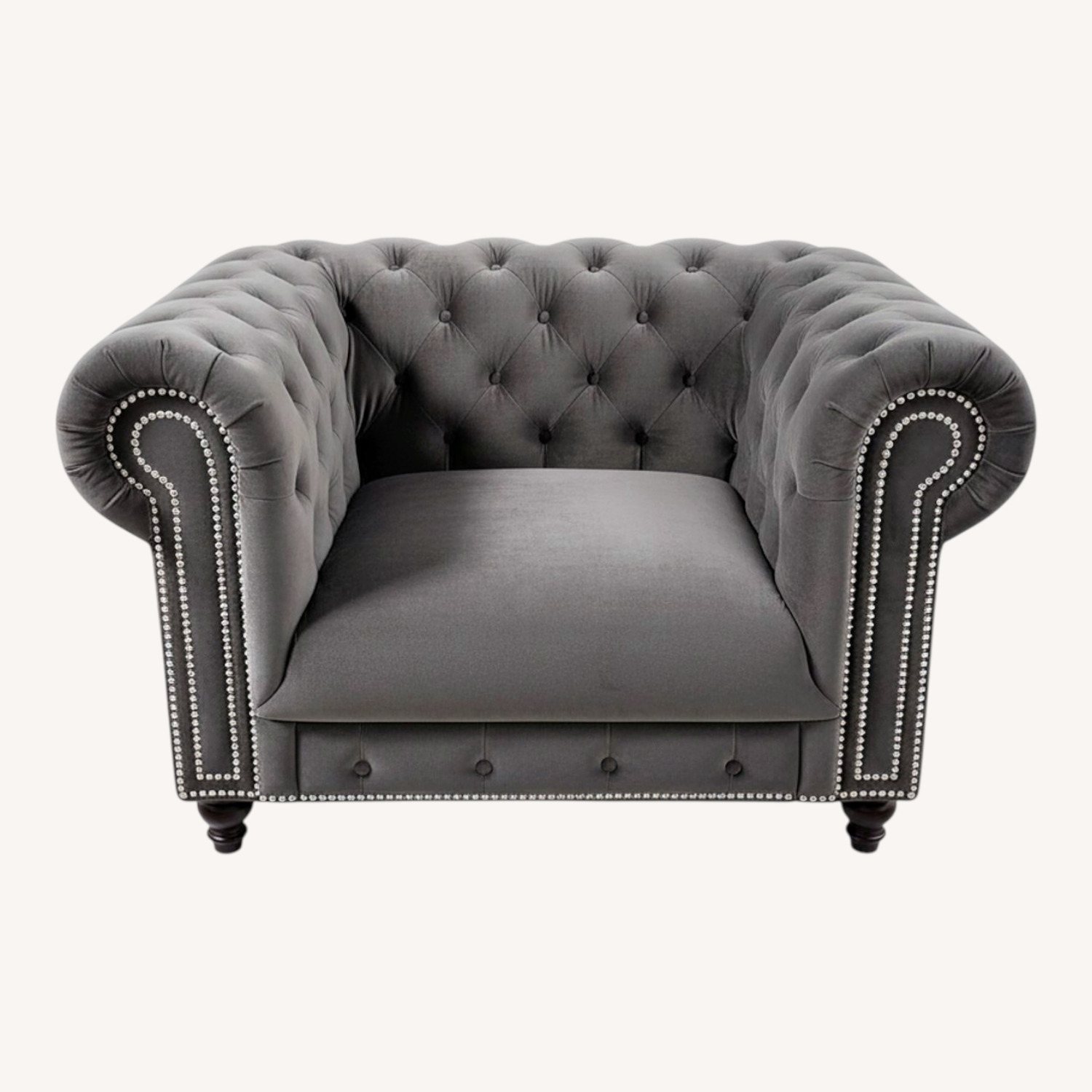 Velvet Charcoal Gray Tufted Chair  - image-1