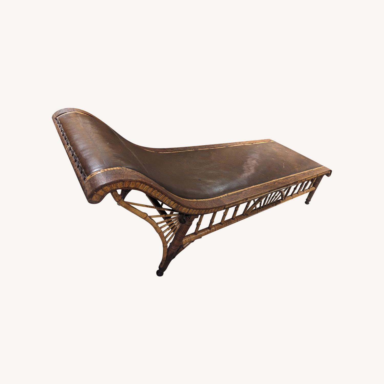 Seller's Notes:Lovely Victorian Chaise Lounge, possibly Heywood Wakefield. Leather, wood, and bamboo construction. Lounge is 25'' at it's highest point. There are a few tiny pieces missing, so this item is being sold as-is.