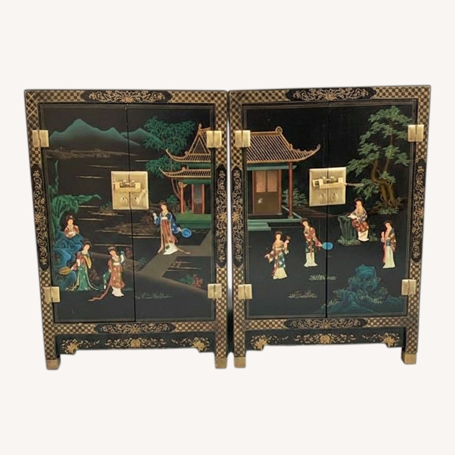 Vintage Asian Hand Painted Asian 2 Cabinets  - image-0