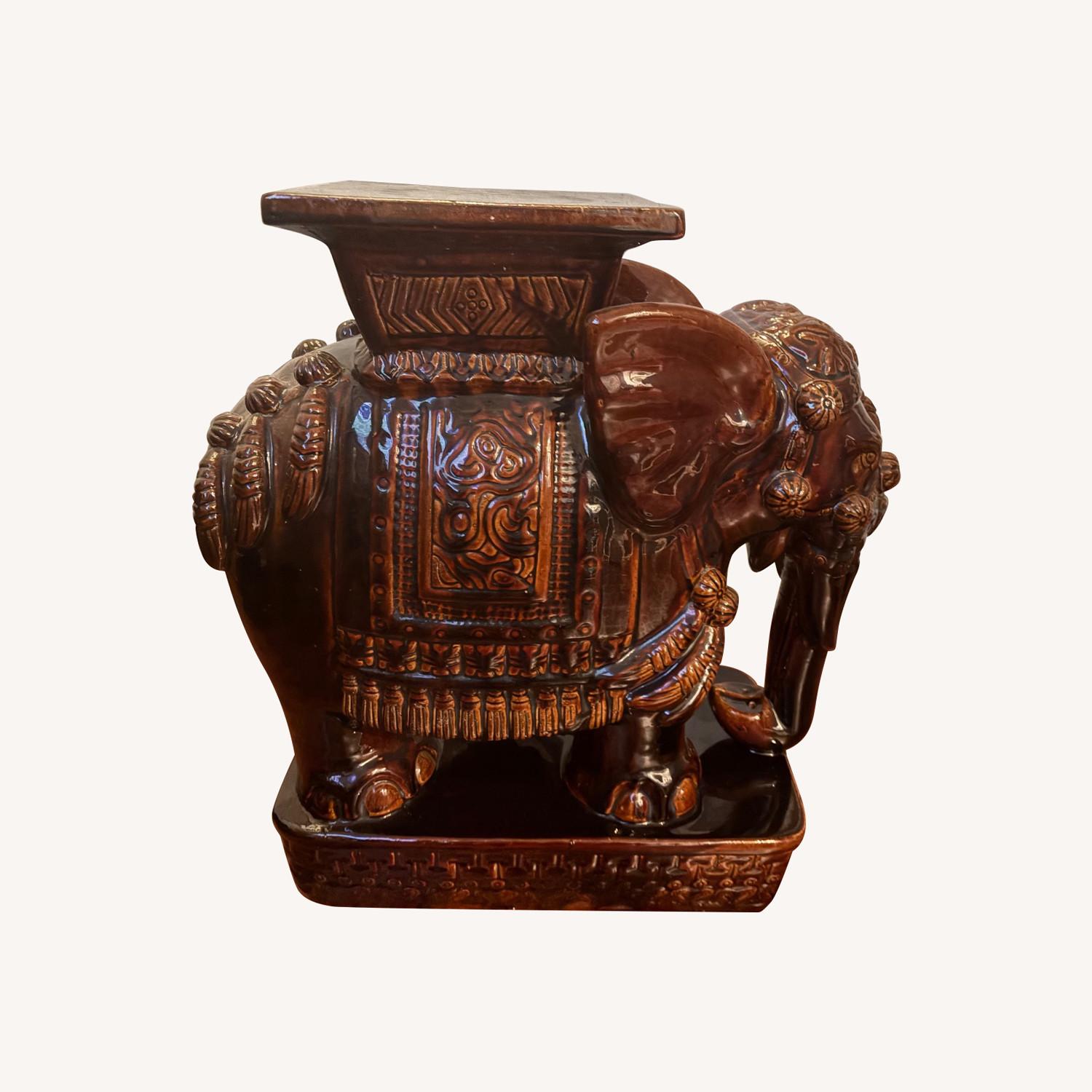 Seller's Notes:Set of two vintage elephant ceramic plant stands. One of the elephants has some discoloration/wear to the base of the stand. The other elephant has a small chip on the top of the stand/seat. Looking to sell as they no longer fit with my decor. Use as decorative pieces to book end an entryway table, bookcase, or fireplace. Can also be used outside or inside as plant stands! Height approximately 23 inches tall, 18 inches length, and 10 inches wide.
