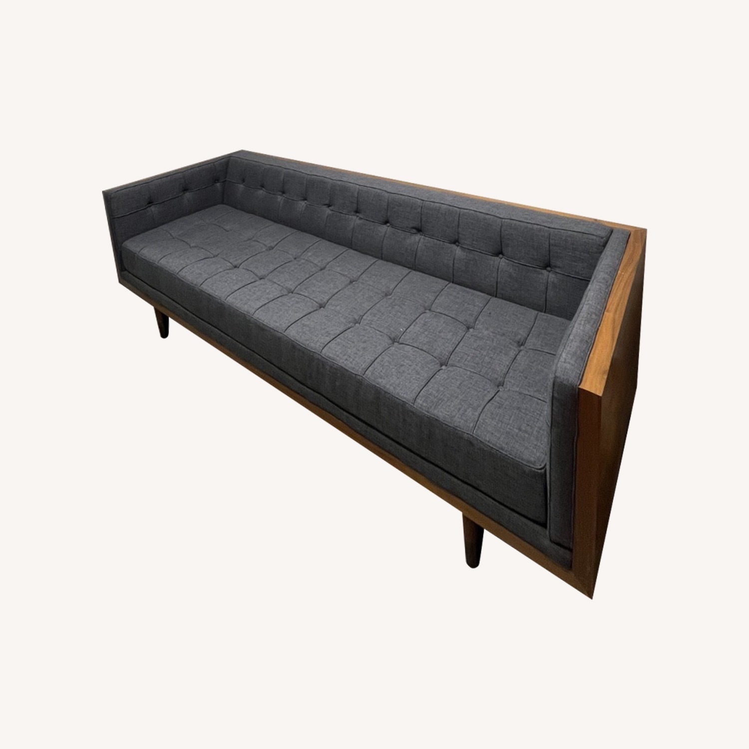 Seller's Notes:Price just reduced for quick sale! Purchased at auction from Rago Arts (www.ragoarts.com) in Lambertville, NJ in 2019, this comfortable and elegant, sturdy Milo Baughman sofa is in excellent condition, for office space where it was essentially never used and was in a protected spot away from sunlight and climate-controlled. Office move is necessitating it's sale by April 24, so, make an offer! Age not confirmed but it's not a recent copy, it was certified by Rago Art to be an original and is in excellent condition.