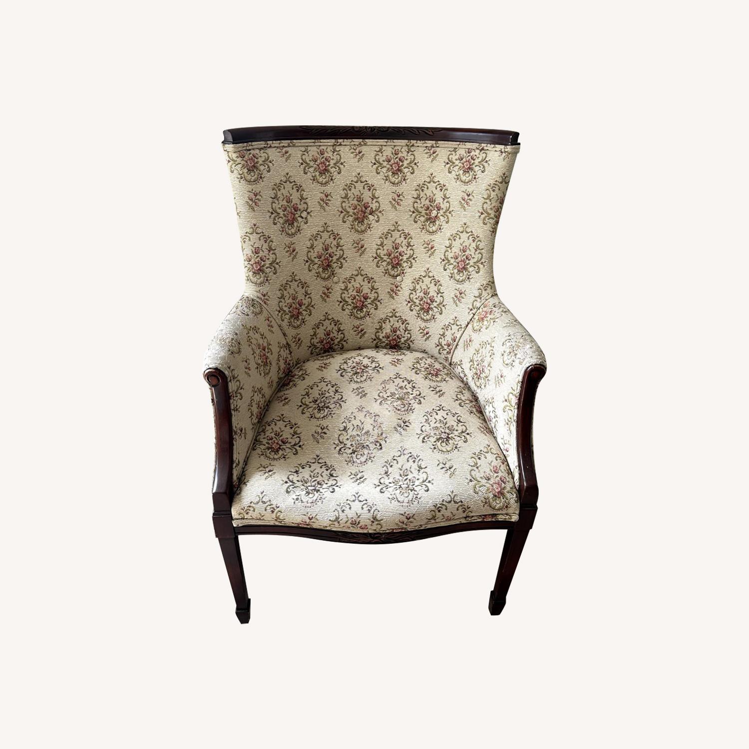 Seller's Notes:Step into a page of history with this one-of-a-kind floral antique armchair, lovingly passed down from my grandmother. Crafted between 1950–1960, it features real wood side panels and the original upholstery—an authentic slice of mid-century charm you simply can’t find today. This chair carries stories: afternoons of tea, laughter, and conversation. Its romantic floral fabric and graceful silhouette instantly bring that Emily in Paris vibe to your home—effortless, chic, and a little nostalgic. Please note: there’s a slight bump on the seat cushion from someone a bit too heavy sitting down, but it’s still fully functional and adds to its lived-in, authentic character. I’m selling it as-is for someone who appreciates its history and charm. Why You’ll Love It: Authentic 1950s–1960s craftsmanship Original floral upholstery & solid wood panels Perfect as a statement piece, reading chair, or decorative accent A true mood-setter that turns any room Parisian-chic If you’re looking for a chair that’s more than furniture—something with soul, beauty, and a story—this is it.
