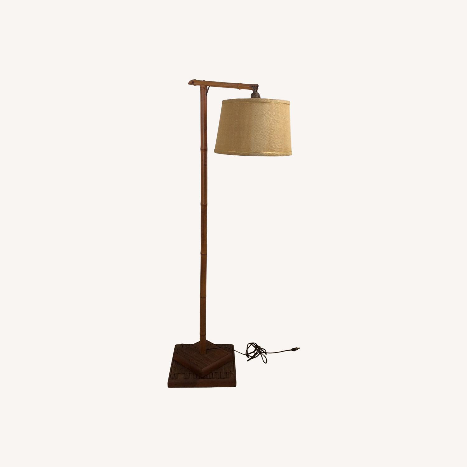 Seller's Notes:This vintage floor lamp features rattan construction, original finish, unique cantilever arm design, pencil reed rattan base, original wiring, and a dead-stock vintage shade (just removed the plastic cover for the photos). Lamp measures 22" wide with the current shade. dimensions on listing are just the base without the shade. Dimensions: 12w 12d 53h Condition notes: Light scuffs and scratches throughout. Cantilever arm has a slight wobble and may need to be tightened eventually. Base is sturdy. Vintage wiring is functional. 9/10 The vendor has confirmed this piece is in working order