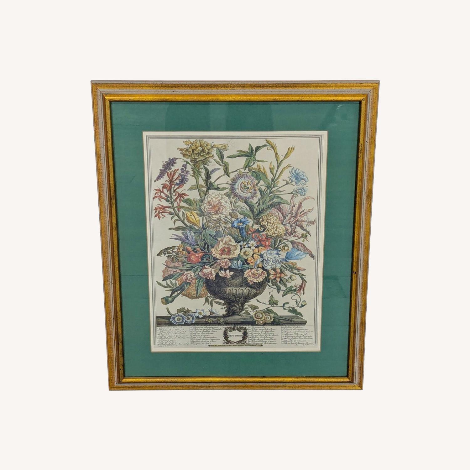 Seller's Notes:Vintage Robert Furber April Flower Vase Framed Print mattedunder glass in a gold wood frame.