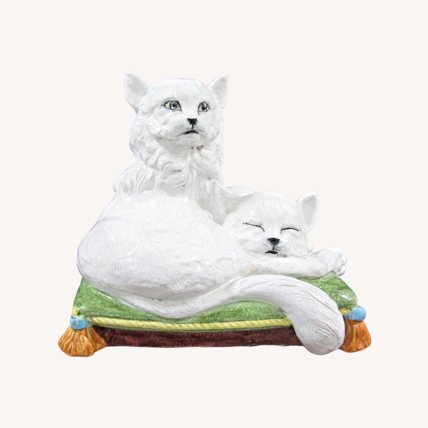 Vintage Sculpture Italian Terra Cotta Two Cats