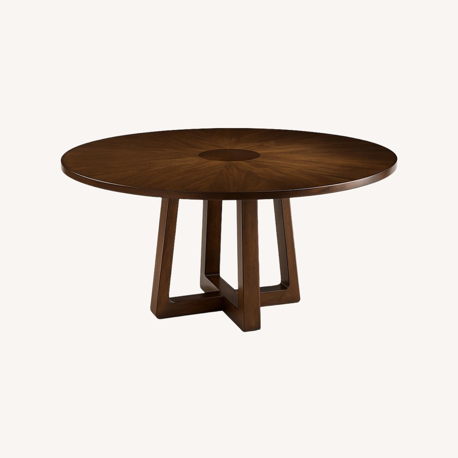 Seller's Notes:Moving out of my home. Need to sell this table. Local pickup only. Dim: 66* Dia x 29,5 H Walnut Veneer Sunburst Top, Book Matched Buri Center Inset. Semi-Fill Bar Top Sheen - As Standard Finish: Custom - Includes Strike-Off