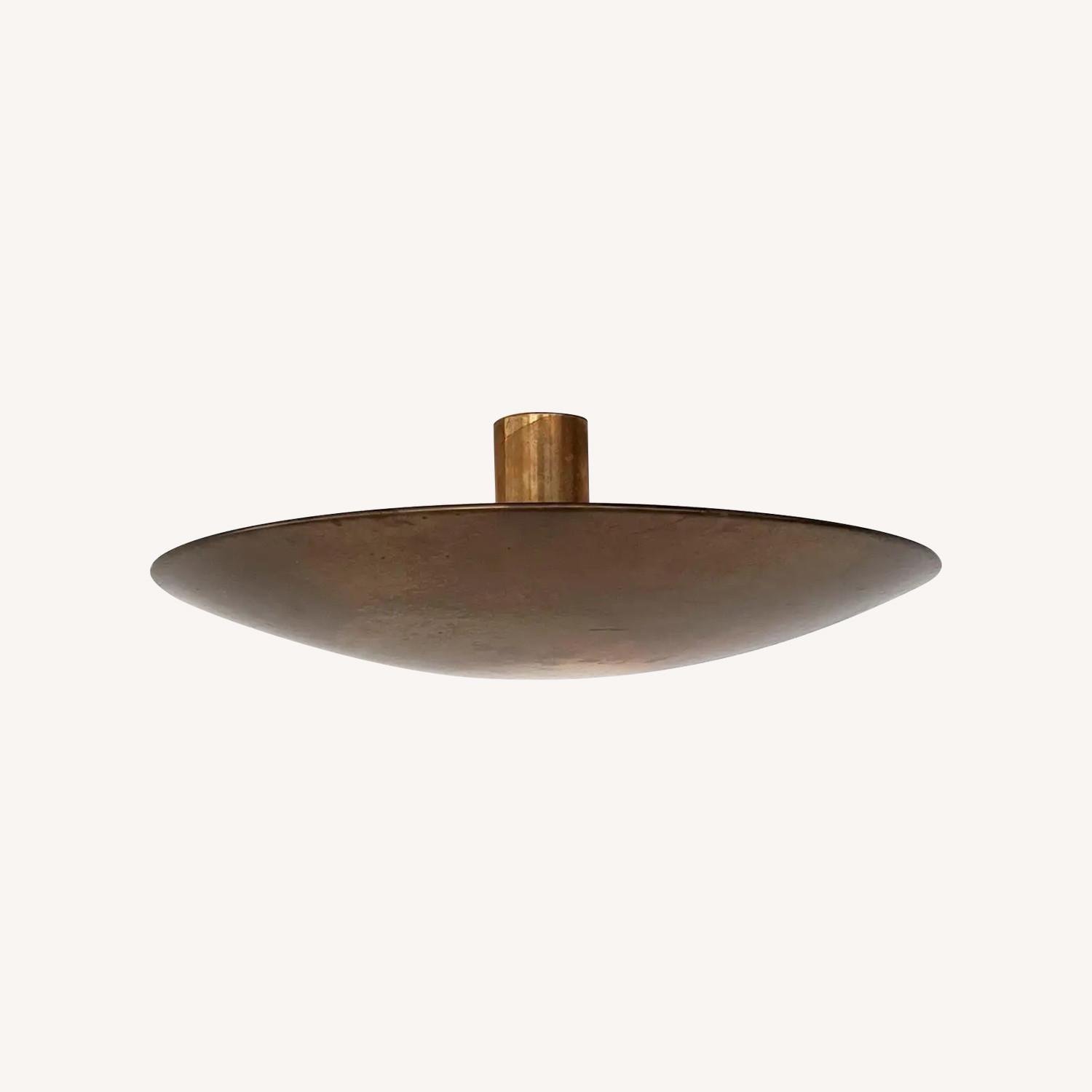 Seller's Notes:Beautiful and large flush-mount light or wall sconce made of full brass by Florian Schulz in the 1980s. The large round dome plate is screwed on the wall or ceiling unit, which holds five Edison light bulbs. The full brass has taken over the years a magnificent dark patina and few small spots. There are no bumps or dents on the lamp, just patina, which shows the real status of original vintage. Magnificent all-over vintage condition for this piece and excellent craftsmanship. Works perfectly with 220V and 100V.