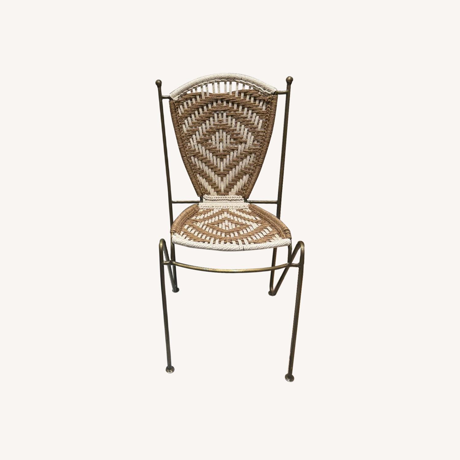 Seller's Notes:Woven vintage set of chairs. Brass, off white, and natural colored material. Sturdy and in good condition.