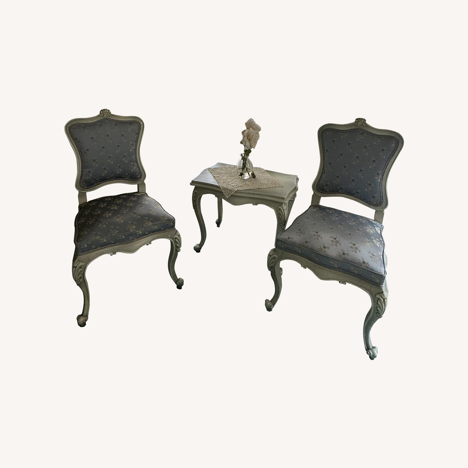 Seller's Notes:This beautiful Rococo/French Provincial style side table and matching chairs are from an original bedroom set purchased in Athens, Greece in 1955! The piece has been kept in very good condition and is located in New Jersey. The dimensions of the side table are: 26" L x 18.5" W x 20.5" H , and the chairs measure 37.5" H x 20" L x 20" W each, with the seat height at 17.5". The entire bedroom set includes a bed frame with built in nightstands, wardrobe, vanity with mirror and bench, two chairs, and a side table. Please see our other listings for additional items!