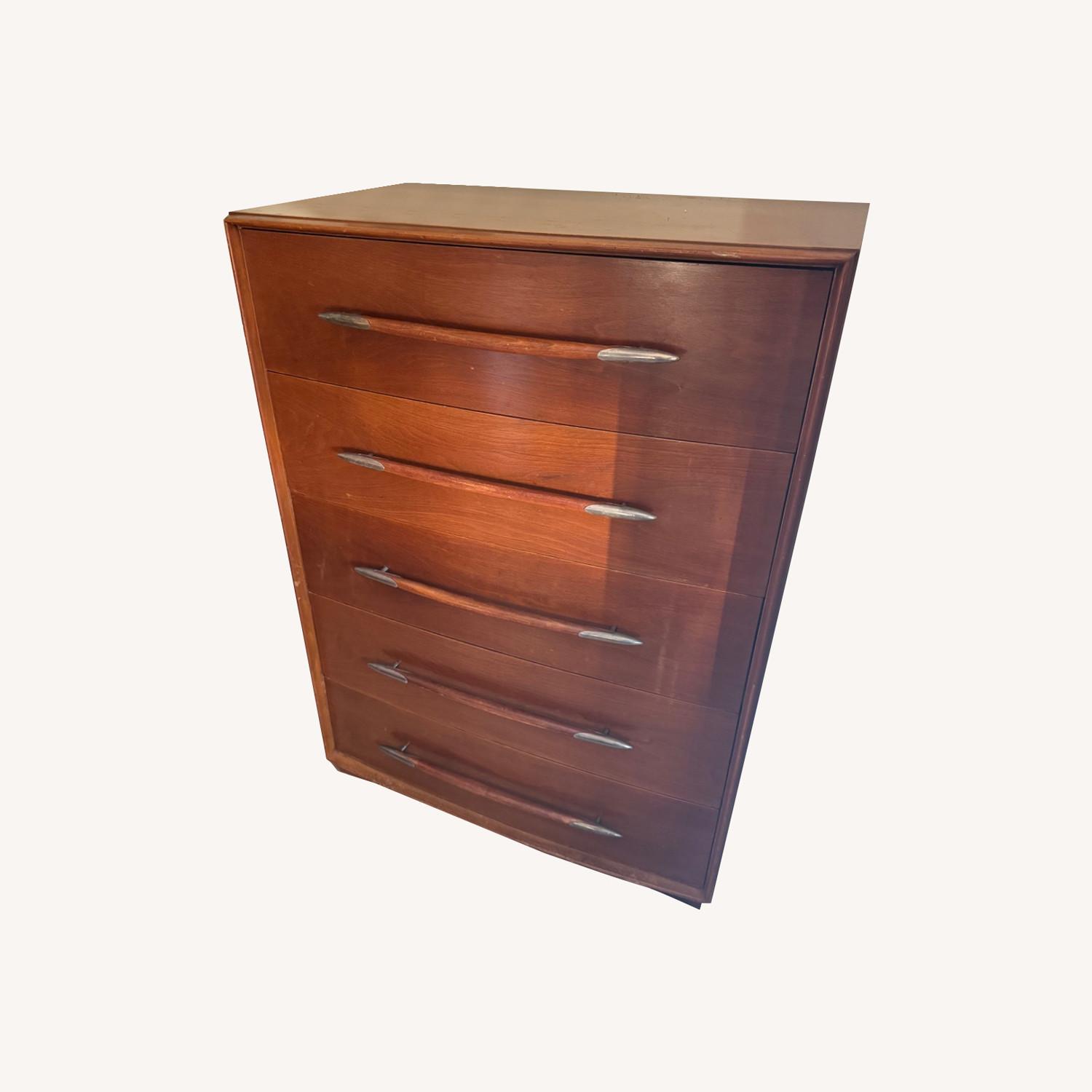 Seller's Notes:**T.H. Robsjohn-Gibbings for Widdicomb Mid-Century 5-Drawer Highboy Dresser** Stunning 1950s *T.H. Robsjohn-Gibbings for Widdicomb* highboy dresser in warm walnut. Classic mid-century form with clean lines, elegant proportions, and impeccable craftsmanship. Five smooth drawers with original sculpted pulls, dovetail joinery, and solid wood construction throughout. Dimensions: 48” H × 34” W × 22” D Condition: Excellent vintage condition with minor age-appropriate wear. Comparable pieces list $3,000–$7,000 on Chairish and 1stDibs. **Asking $3,800 OBO – local pickup in Manhattan.** An iconic and timeless Robsjohn-Gibbings design — refined, rare, and collectible.