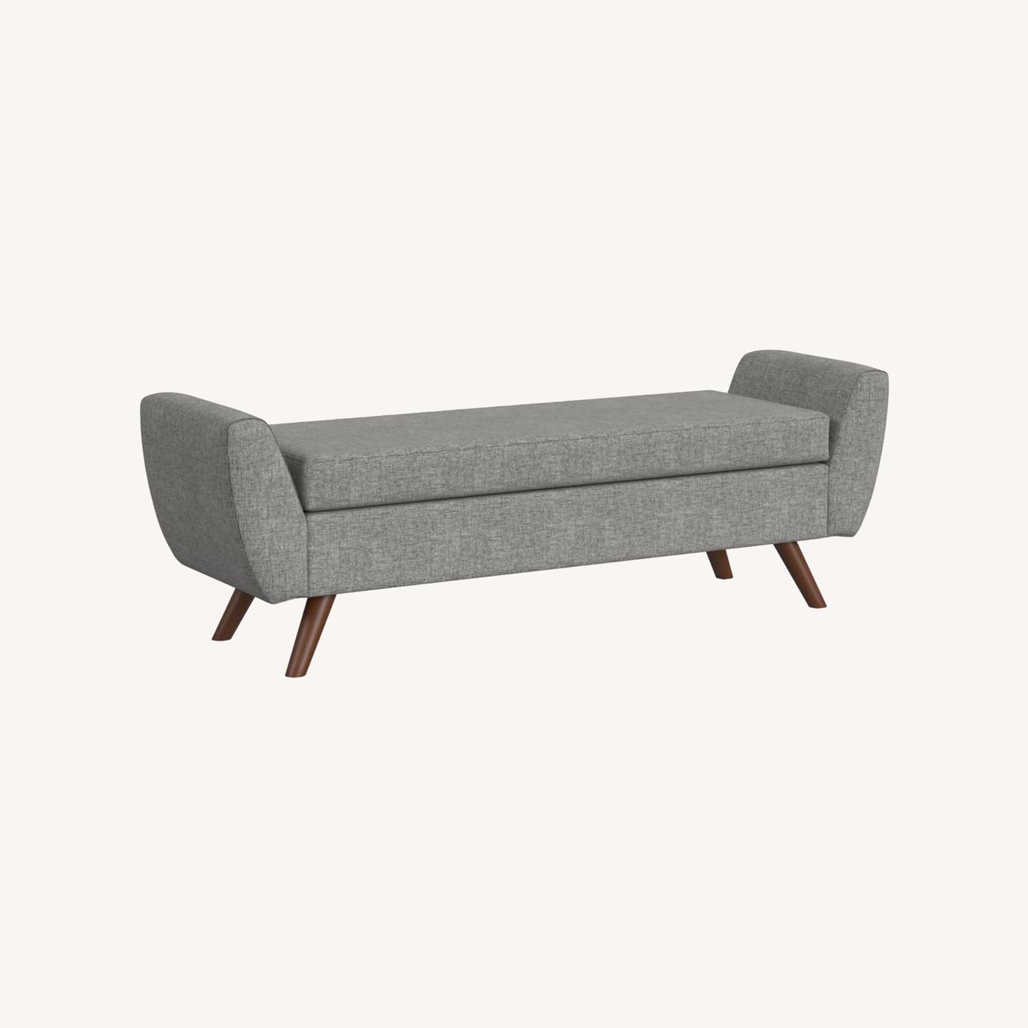 Add style and storage to any room in your home with our Modern Storage Bench. Featuring a modern design and mid-tone walnut finished wood legs, our multi-functional olive green woven fabric storage bench can provide seating and double as a coffee table, serve as a bedroom bench or as an entryway bench with storage. This unique and functional upholstered bench easily blends with many different styles and colors in your home. If you’re looking for a premium addition to your home at a reasonable price, make this your next accent furniture investment. Easy to assemble and maintain, spot clean only.