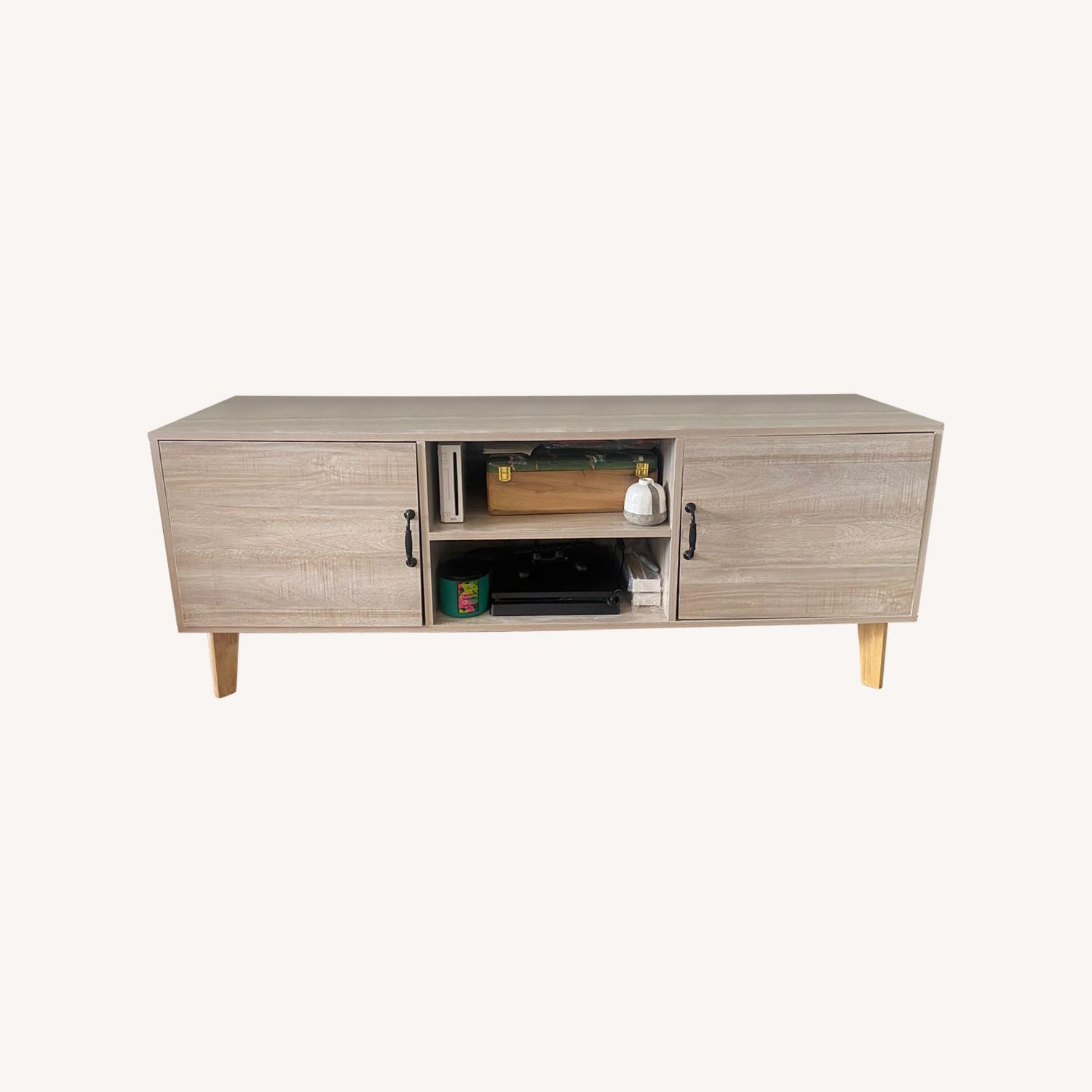 Seller's Notes:This product has been a really nice decor with light beige wood, wooden legs and black handles. It offers a lot of storage but also has room for decoration in the open middle section. I assembled this myself so the doors can be reassembled/adjusted as I seem to have screwed it on a bit not straight. A bit different from the retail link as this has wooden legs (unlike the black metal links in the link) and shorter width. but otherwise the look and other details are the same.