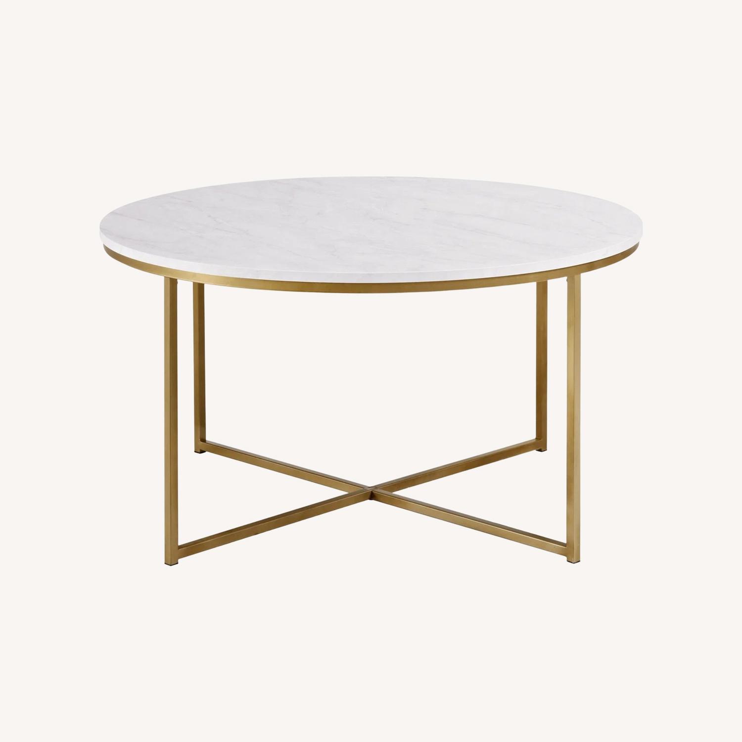 Seller's Notes:This coffee table elevates your living room with an organic, modern look. It has a metal, minimalist X-shaped base that feels open and breezy.
