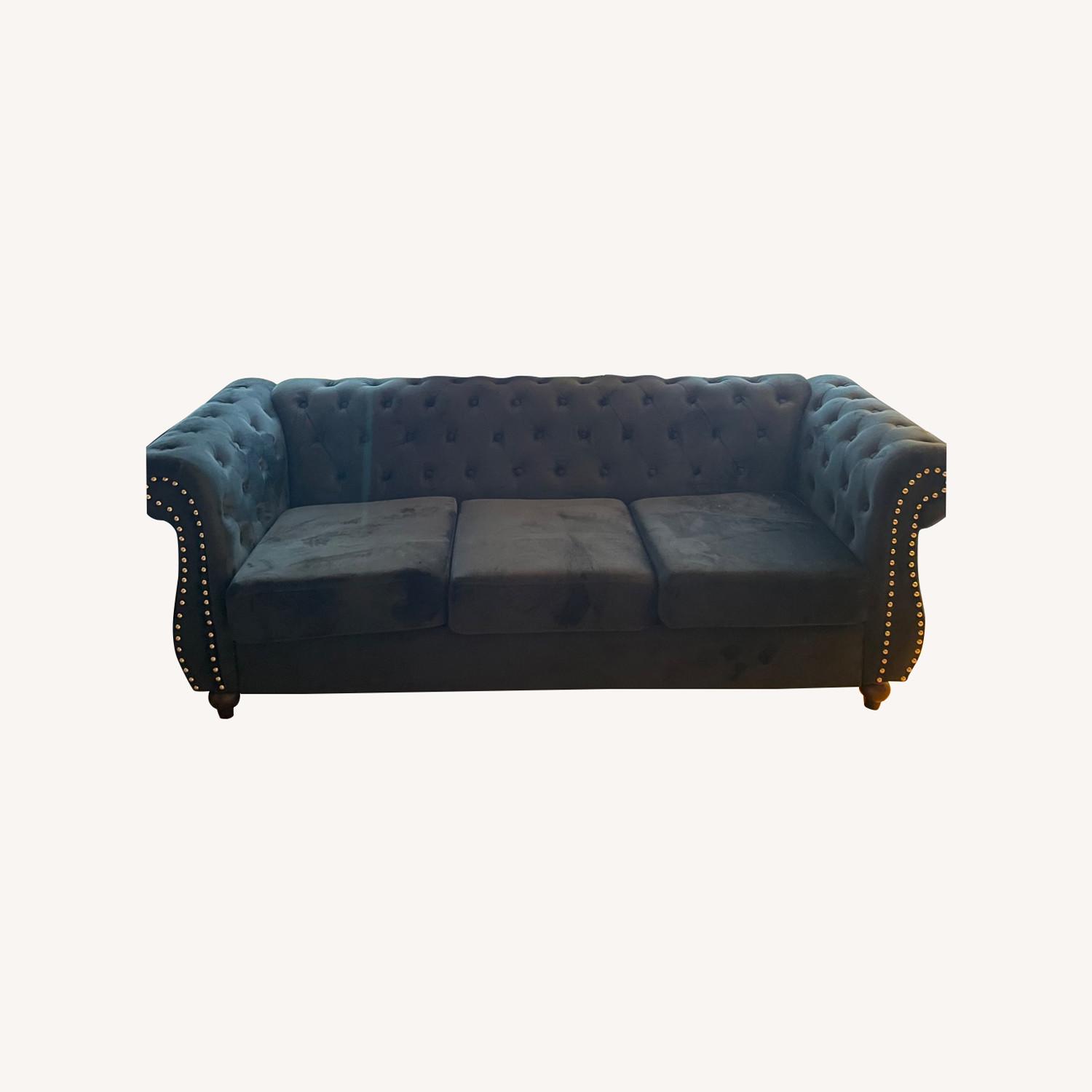 Seller's Notes:Gosser 82.6” velvet round arm sofa. Upholstery color:Black. This color is absolutely stunning. The fabric feels soft and luxurious. Solid, so comfortable. No wear and tear. It’s 3 years old. Sat on a few times. Great condition.