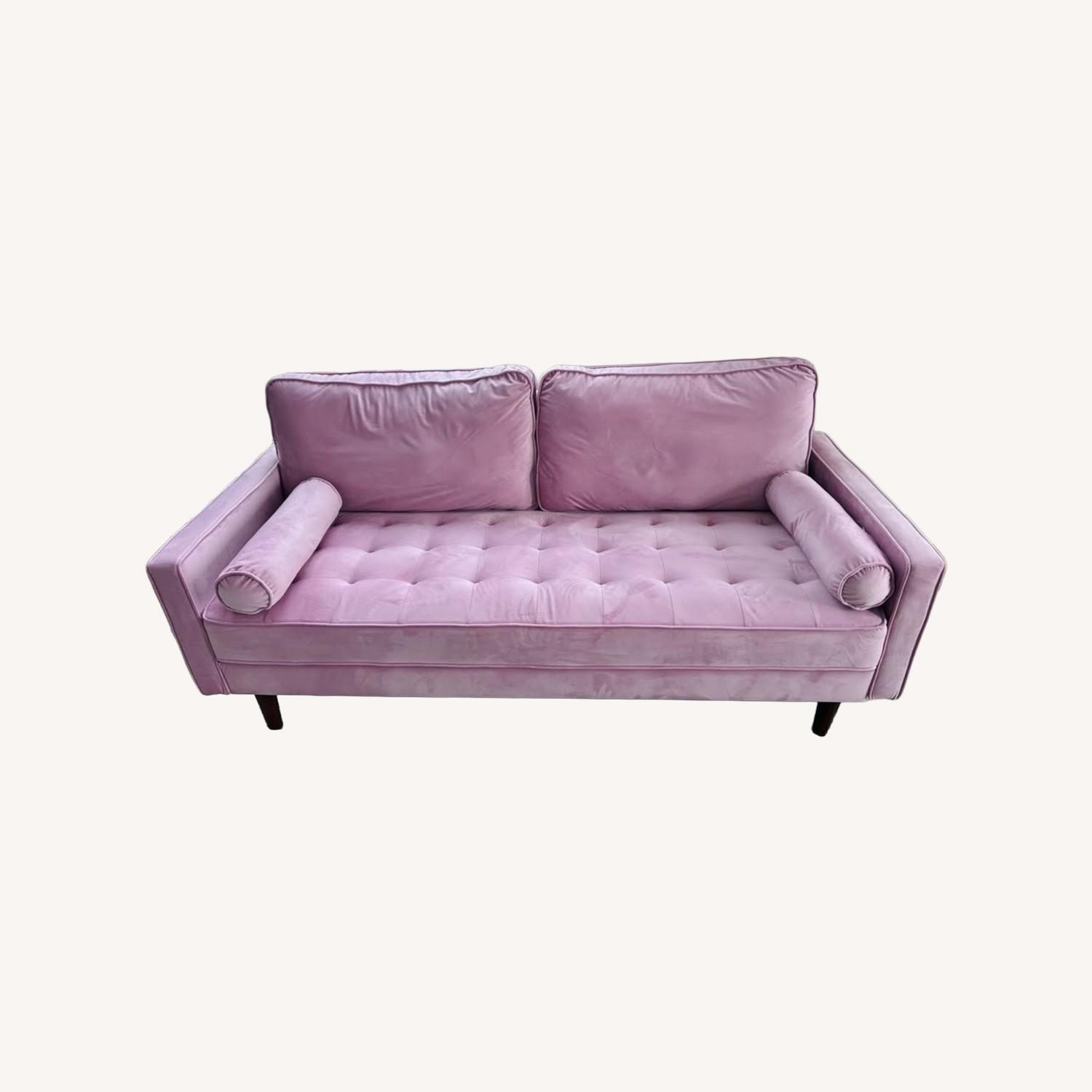 Seller's Notes:Basically new, less than a year old, in fantastic condition (no stains, no tears). We got this couch in October 2025 and have now decided that we would prefer to have a sleeper couch in the space. Since we live in NYC, we can't accommodate two couches in our space! Tufted velvet, comes with two pillows. Springy and comfortable. Perfect pop of color in any space.