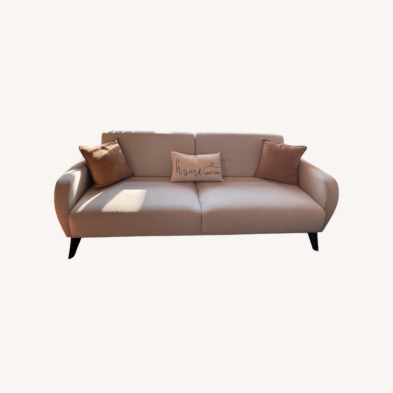 Seller's Notes:Beautiful white fabric 3-seater sofa purchased in February 2022. Originally $714 retail. This couch is spacious, comfortable, and has a modern, clean look that fits any decor style. Gently used and well maintained. Cushions remain firm and supportive, and the frame is solid.