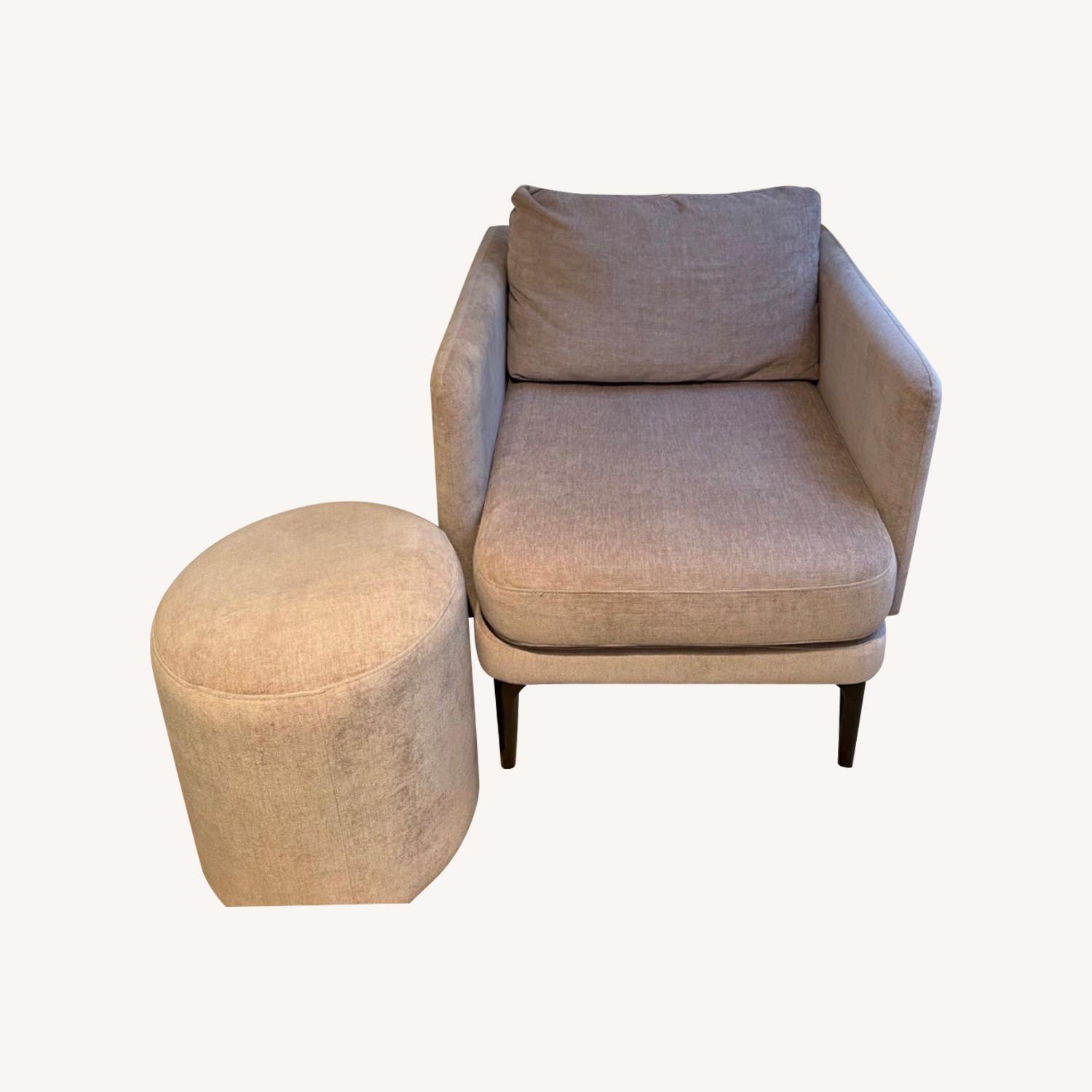 Seller's Notes:Lovely accent chair for reading or a living room. There are no damages and comes with the matching ottoman.