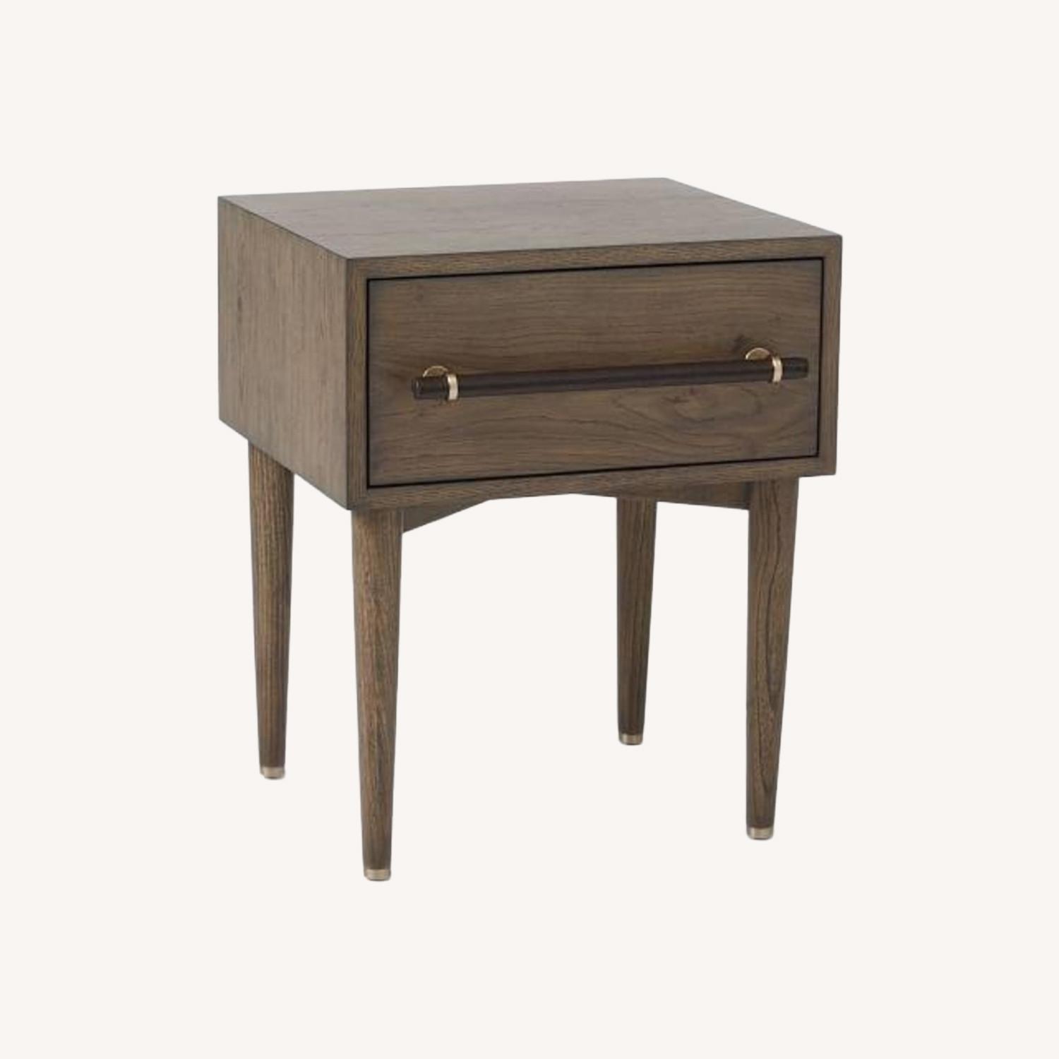 West Elm Benson Walnut & Leather Nightstand with Drawer