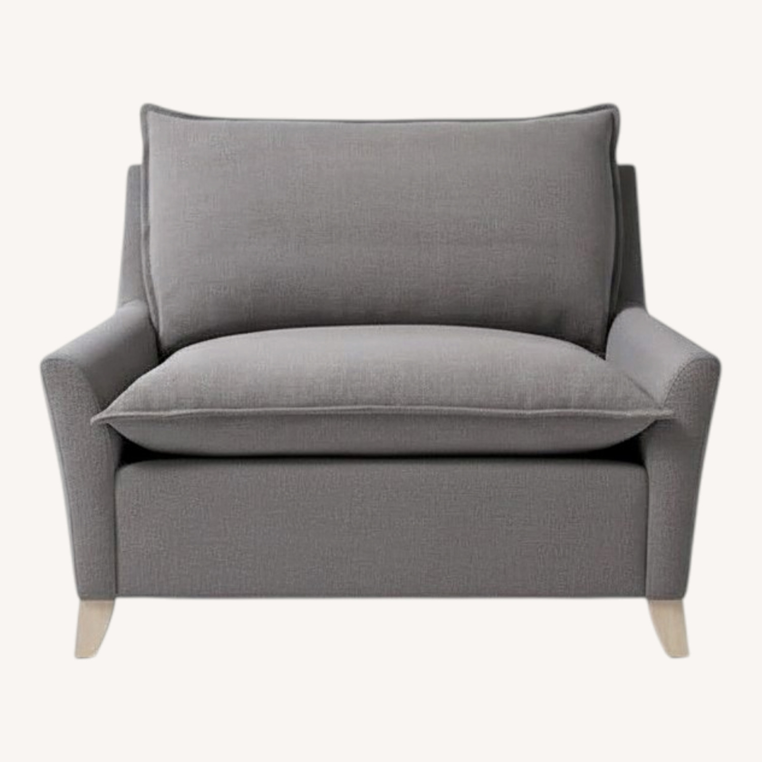 Seller's Notes:Total bliss. Whitewashed solid ash legs, a deep seat and a wide profile make the Bliss Chair-and-a-Half big enough to fit you and a stack of your favorite magazines. Each is crafted in the USA with hand-built frames, down-filled cushions and hand-finished upholstery.