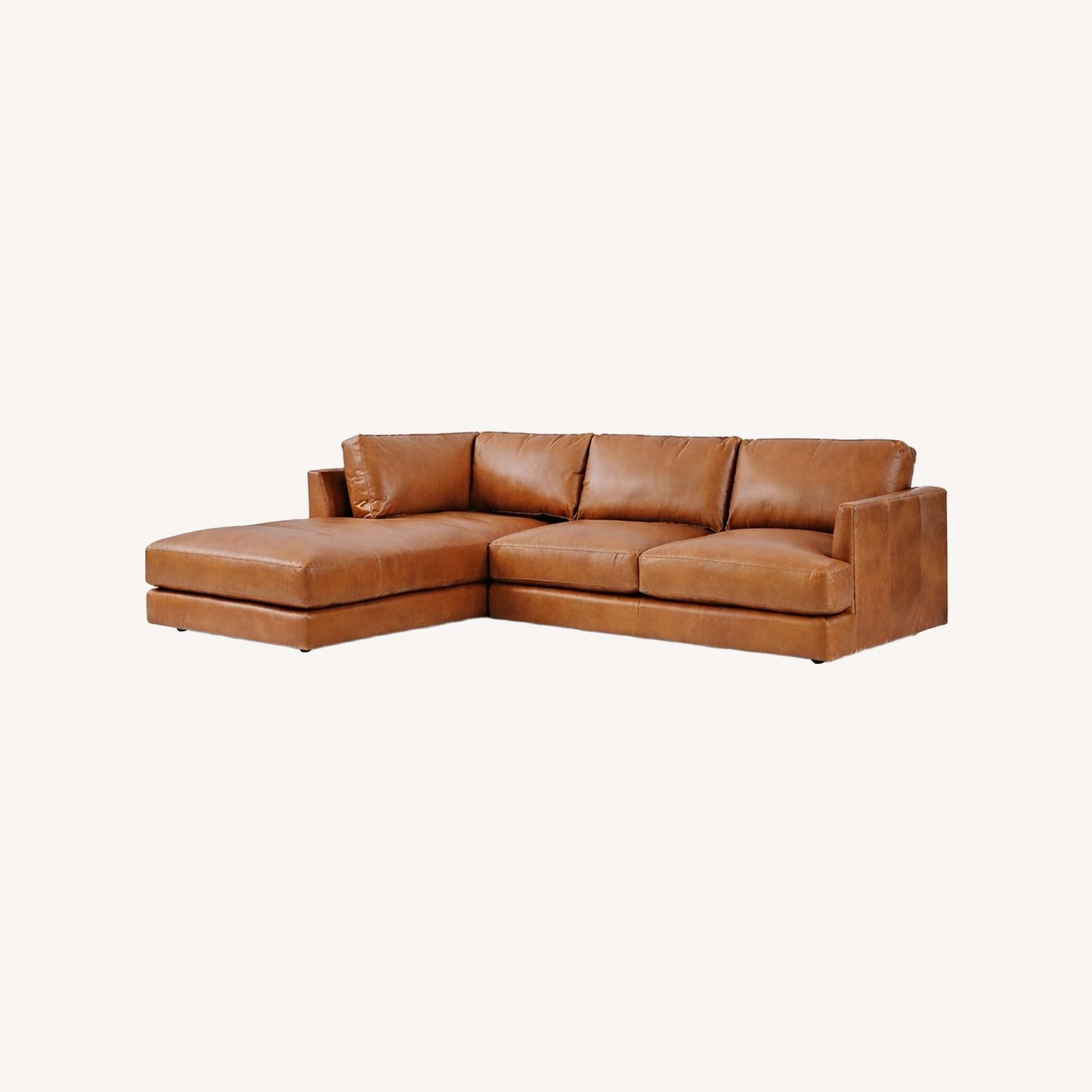 Used West Elm Light Brown Leather 2 Piece Sectional for sale on AptDeco