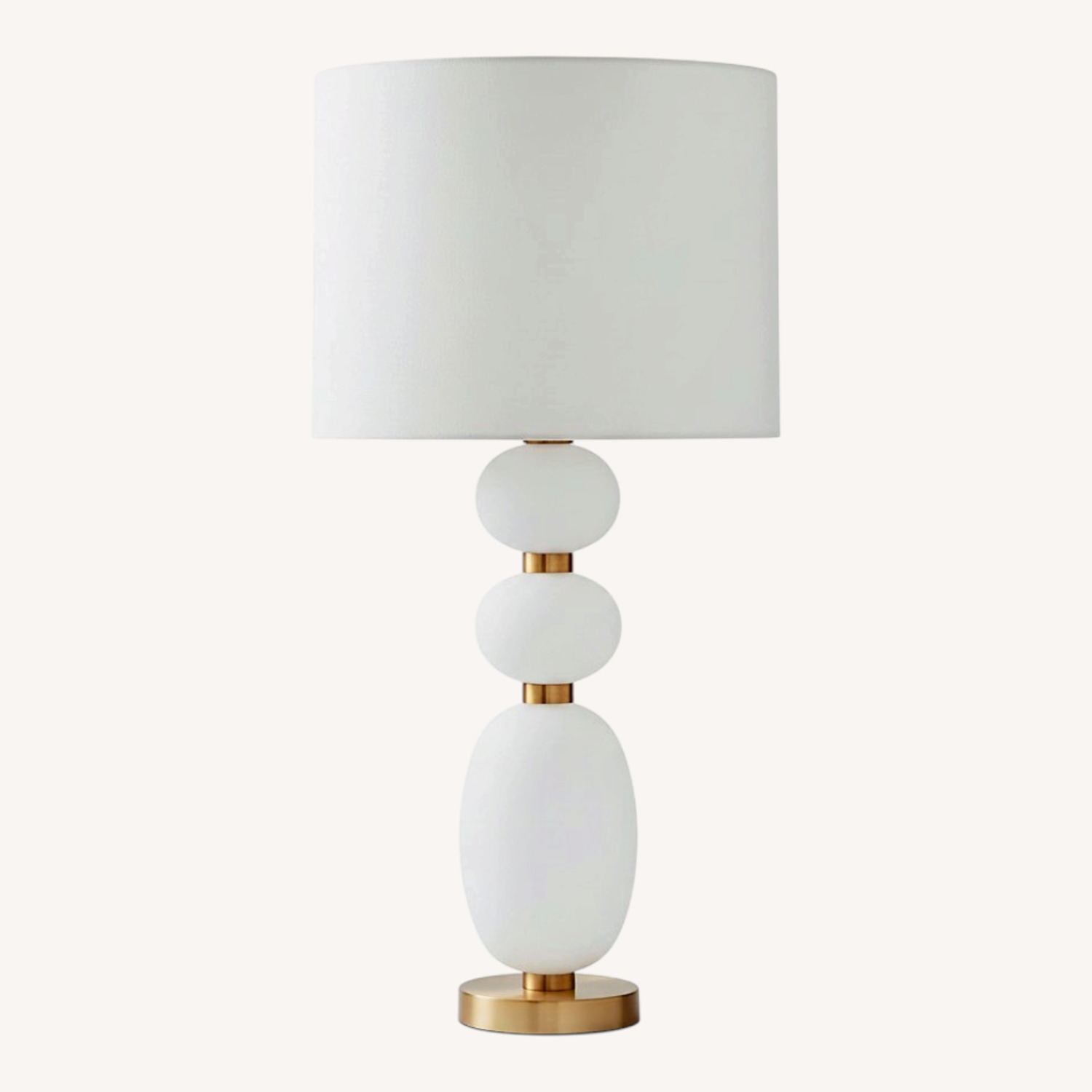 Like beads strung on a necklace, the Lilah Table Lamp stacks frosted glass and brass-finished accents to instantly dress up nightstands or consoles.