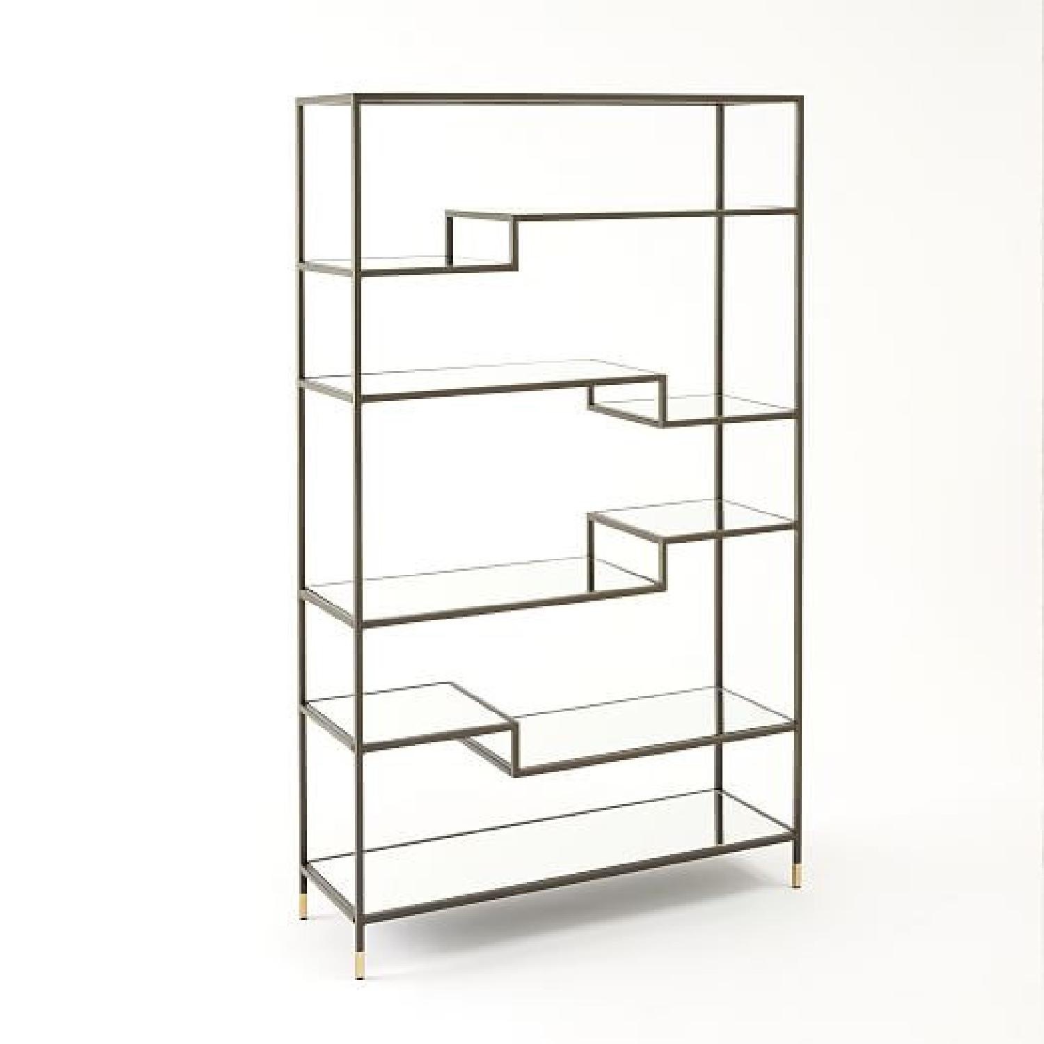Seller's Notes:Stylish storage. With cascading mirrored shelves and antiqued-brass-capped feet, the Tiered Tower Bookcase is a dressed-up way to display your favorite books or knickknacks.