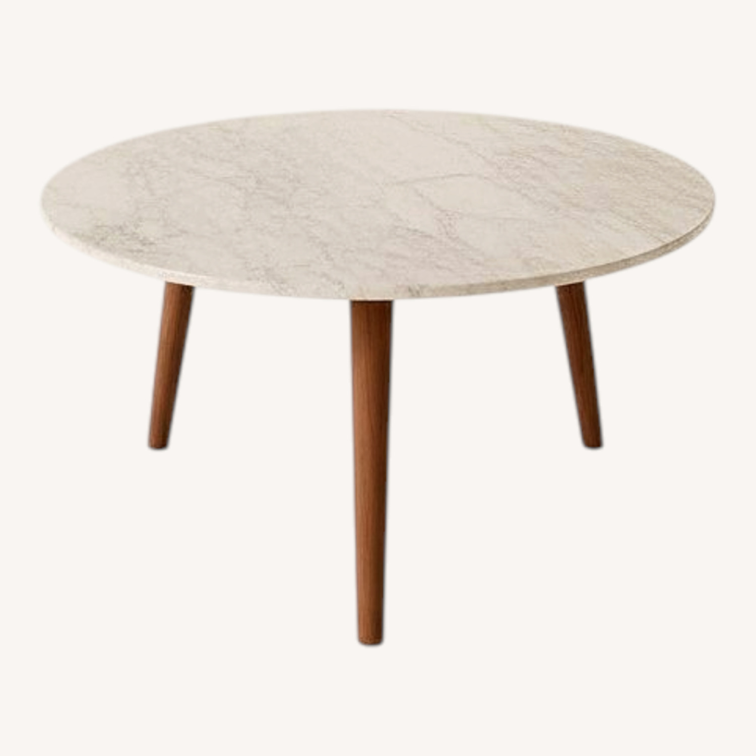 Seller's Notes:Beautiful round marble coffee table with a timeless, minimal design. The smooth marble top adds a light, elevated feel, while the warm wood legs ground the piece and bring in natural texture. This table is in great condition and has been well cared for, with only light, normal wear. Round marble top Solid wood legs with a tapered, mid-century silhouette Clean, versatile design that works in both modern and traditional spaces Sturdy and well-balanced Perfect as a centerpiece for a living room—adds warmth, texture, and a polished look without overwhelming the space. Selling as part of a home refresh.