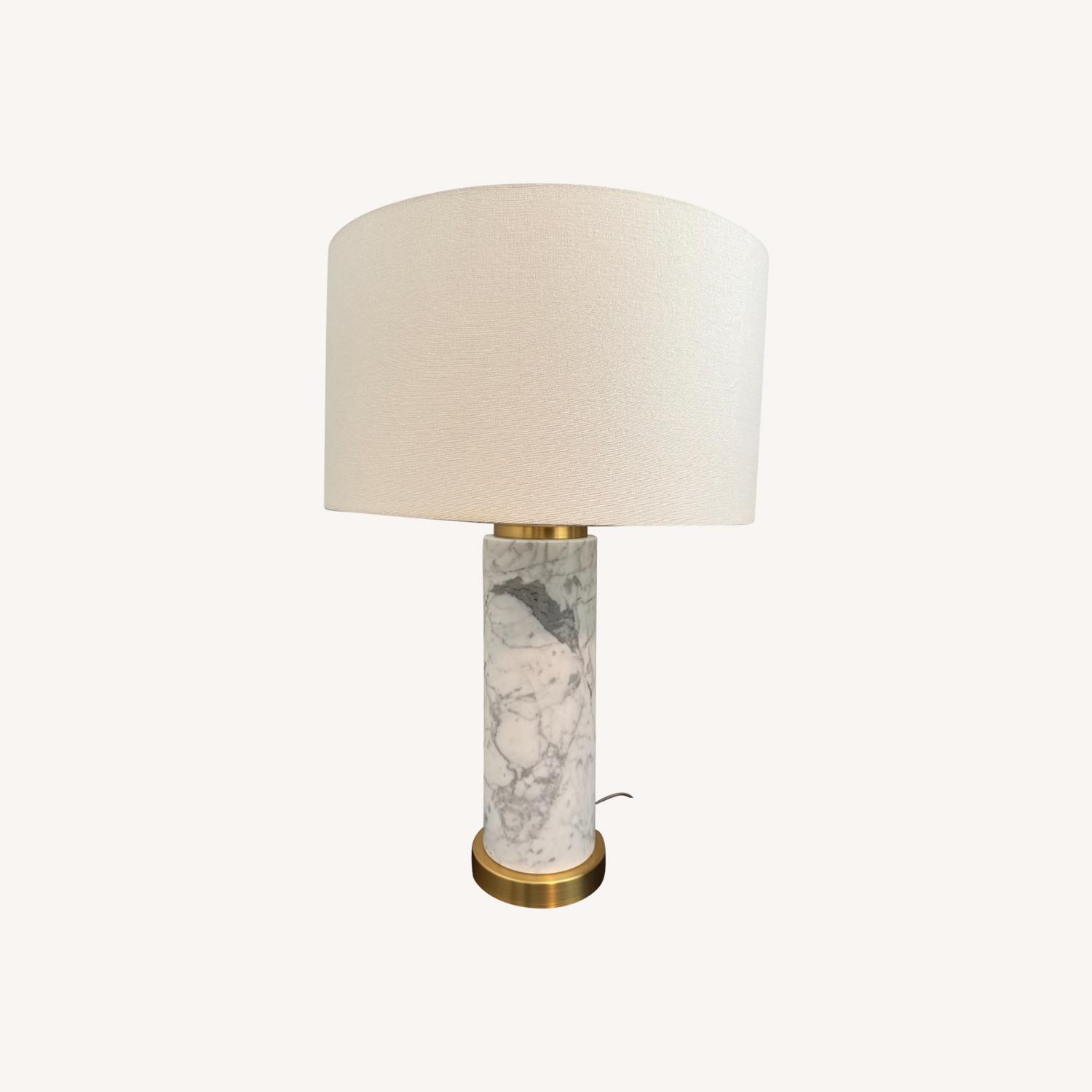 Seller's Notes:Selling a pair of West Elm table lamps with solid marble bases, brushed brass accents, and linen drum shades. Each lamp also has a built in USB port for charging (super convenient for Kindles!)