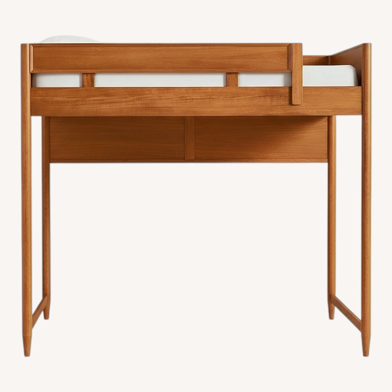 Inspired by modern American design, the Mid-Century Loft Bed borrows its slim legs and rounded, beveled edges from iconic ‘50s and ‘60s furniture silhouettes. It boasts tons of functions like a desk underneath, pencil drawers and a USB strip. Perfect for small-spaces, this stylish piece fits the Mid-Century Dresser underneath (sold separately). Designed in collaboration with west elm.