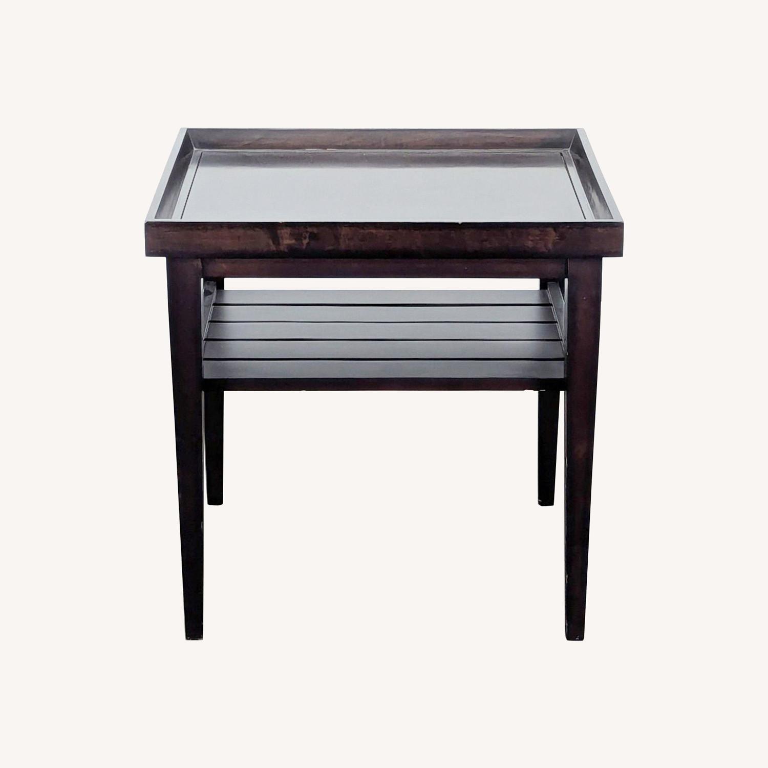 Wooden End Table with "Tray Top" and Slatted Shelf