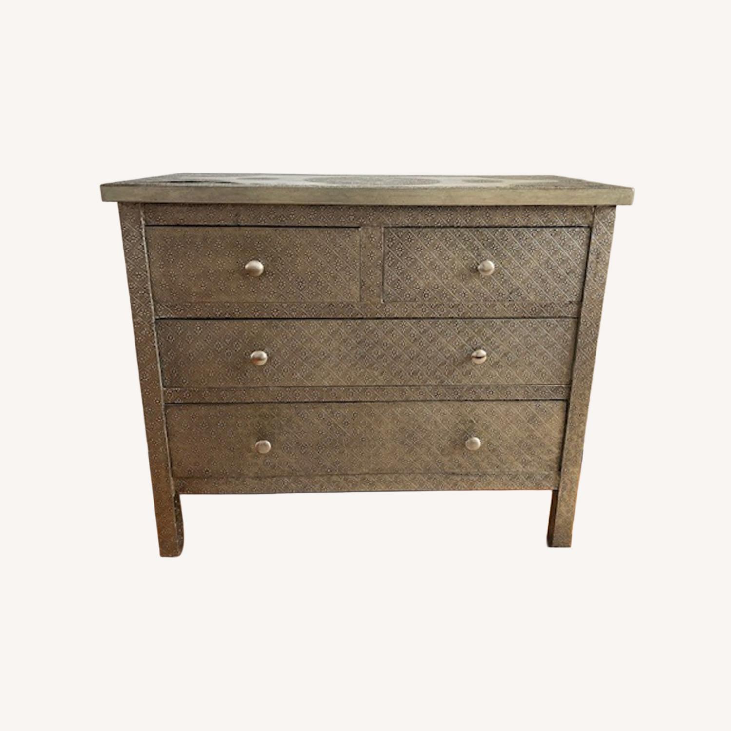 Crafted of mango wood wrapped in hand-embossed metal, the Kiran Embossed Metal Dresser is rich with character and versatility. It features a medallion motif, four roomy drawers and a premium-quality finish treatment, making this World Market exclusive a must-have piece a at a very affordable price.